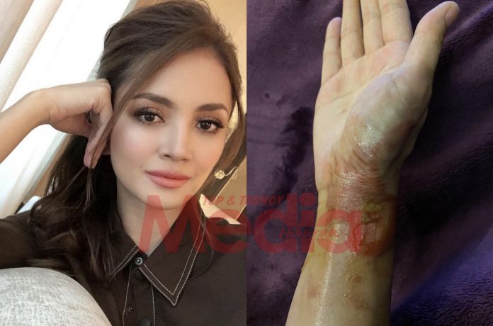 Isteri kepada pelakon Fattah Amin itu memuat naik foto keadaan terkini tangannya yang cedera akibat terkena minyak panas ketika memasak, baru-baru ini.