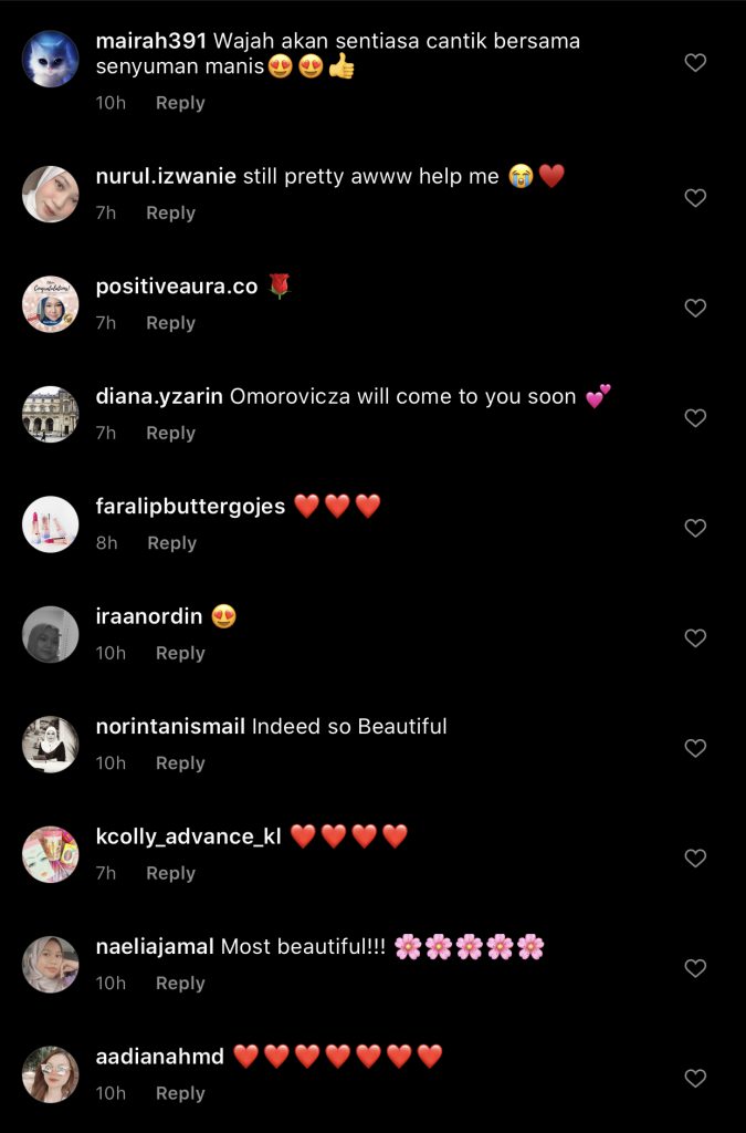 Meninjau ke ruangan komen, para peminatnya turut meninggalkan pelbagai respon dan kebanyakannya memuji wajah tanpa mekap isteri kepada aktor Farid Kamil ini.