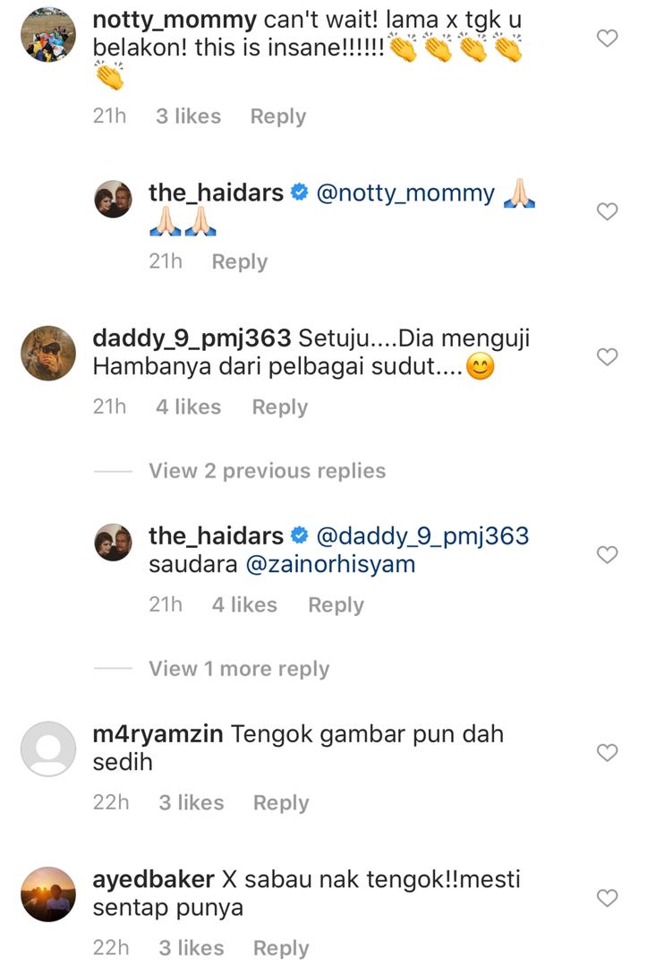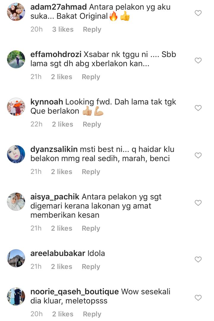Melihat di ruangan komen, rata-rata peminat teruja dengan perkongsian tersebut malah mereka turut telah meletakkan ekspetasi yang tinggi terhadap hasil akhir telemovie berkenaan.