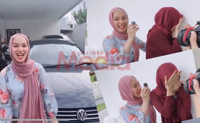Pekongsian tersebut kelihatan Tya telah menghadiahkan sebuah kereta berjenama kepada perkerja di syarikat miliknya.