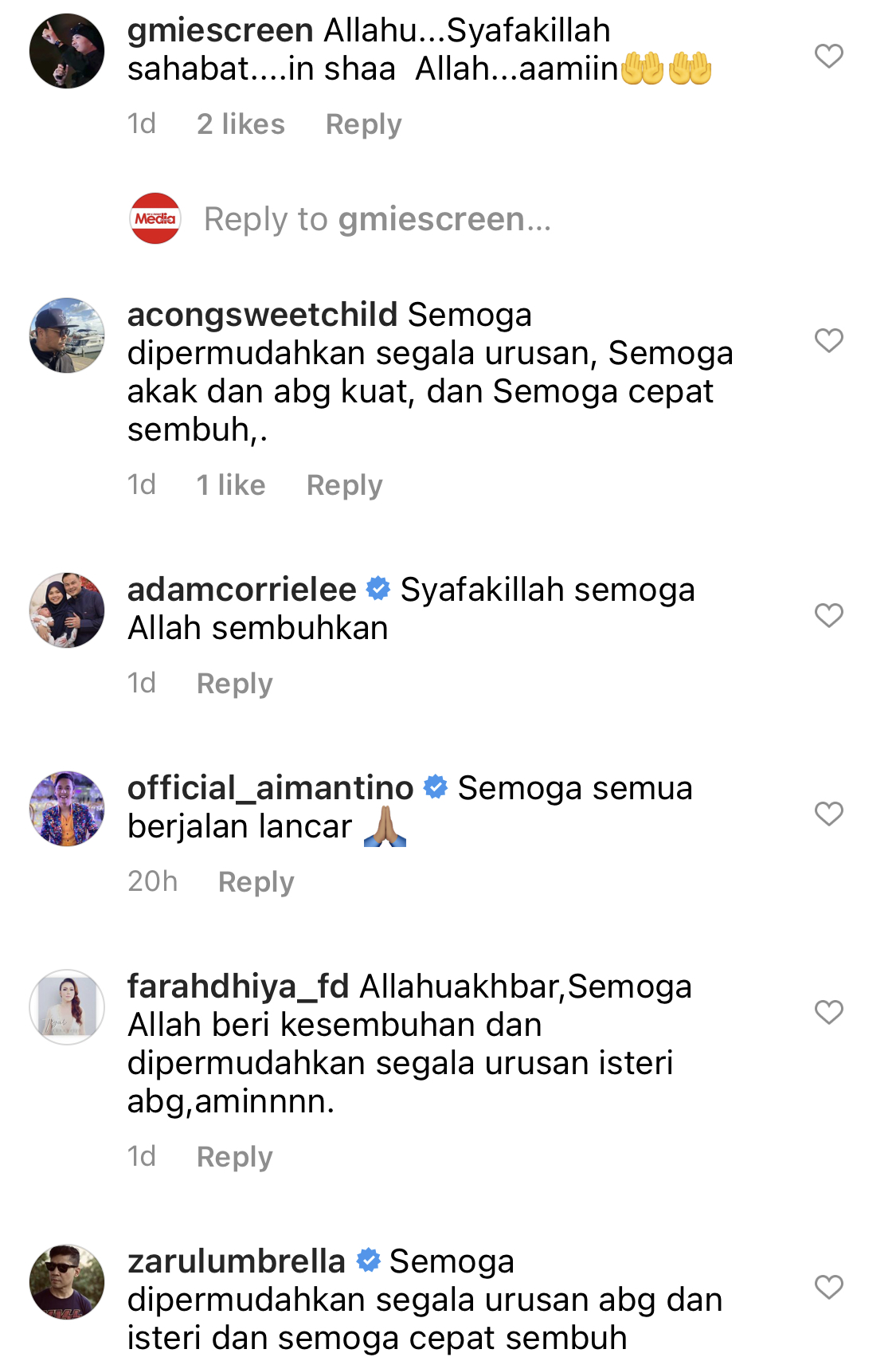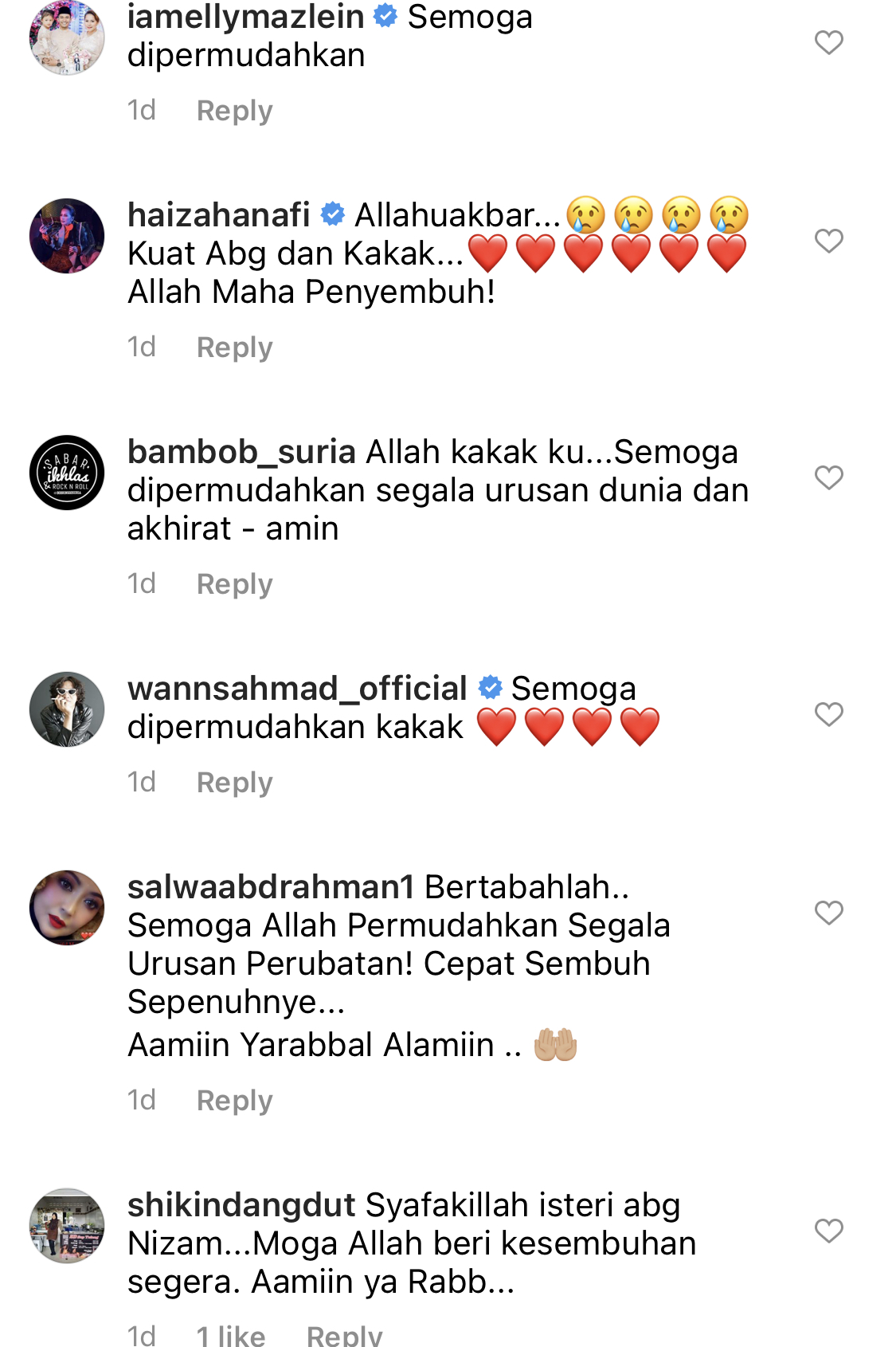 “Lufya bertambah sedih apabila membaca komen-komen yg mengundang banyak fitnah terhadap dia dan lufya delete posting smlm untuk ketenteraman semua pihak. Hati wanita ni jika dijaga, dibaja, dan disiram dengan perhatian dan kasih sayang tak mungkin meletop tak tentu pasal.
