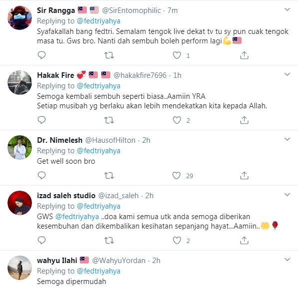 “Terima kasih banyak-banyak… Tuhan sahaja tahu perasaan kami sekeluarga. Hanya Tuhan mampu membalas jasa peminat, kawan-kawan dan orang ramai yang membantu.