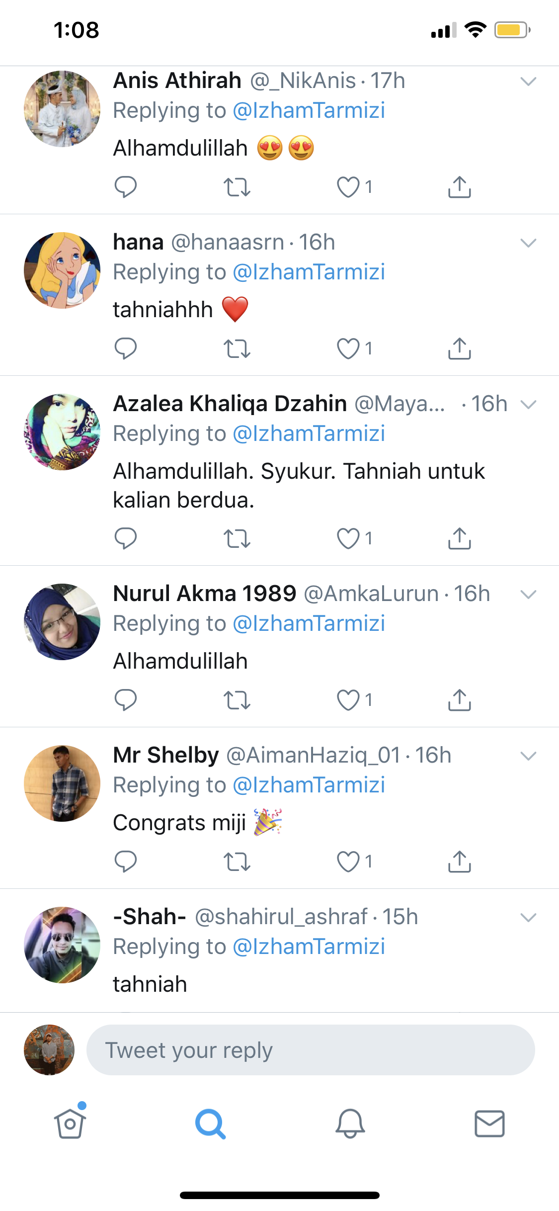 “Salam. Alhamdulillah isteri saya telah selamat melahirkan anak kedua kami pda jam 5.20 petang tadi.