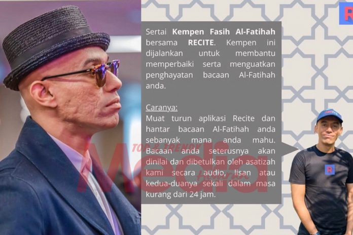 “Guna feature #fasihalfatihah kami. @reciteapp boleh download kat AppStore & Google Play. Moga membawa manfaat,” kongsinya.