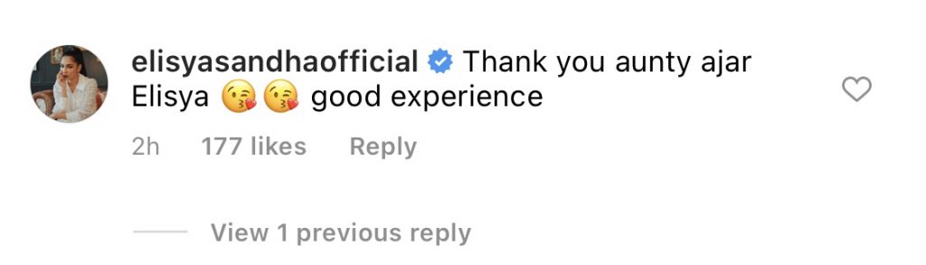 “Thank you aunty ajar Elisya good experience,” tulisnya menerusi ruangan komen entri tersebut.