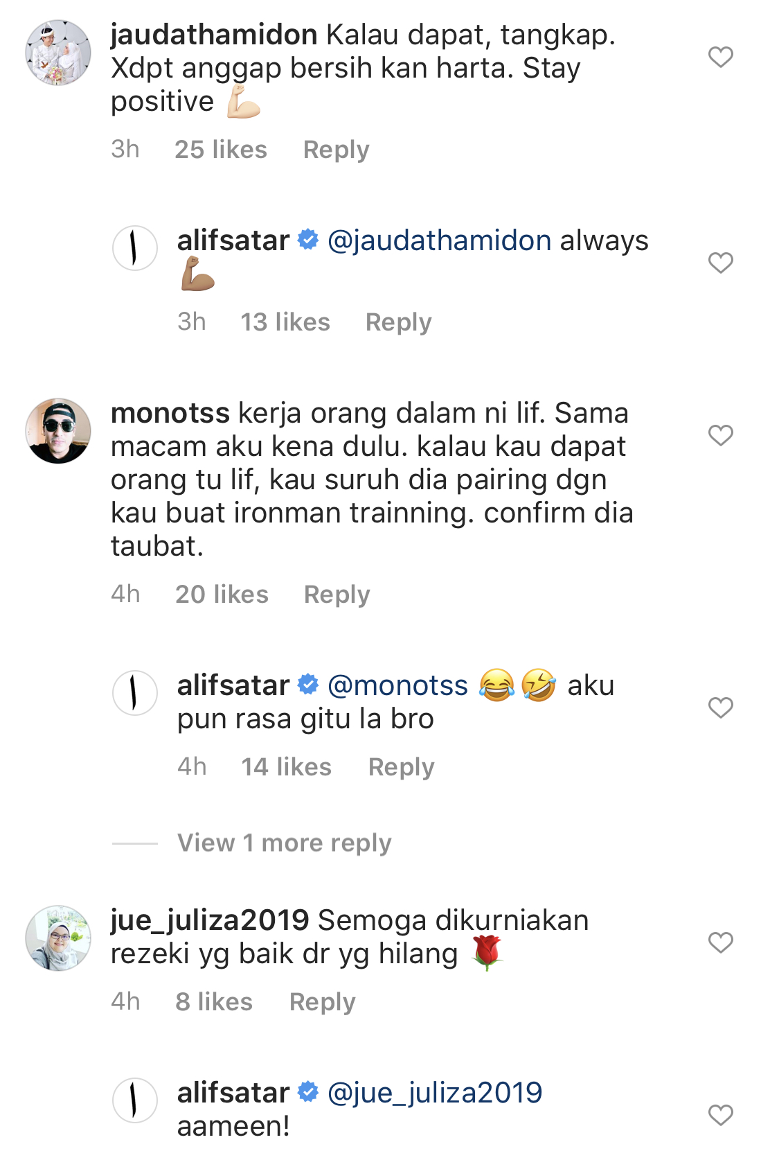 “Semua yang datang tu adalah rezeki untuk kita. Orang yang mendoakan kita jangan pula kita hampakan,” jelasnya lagi.