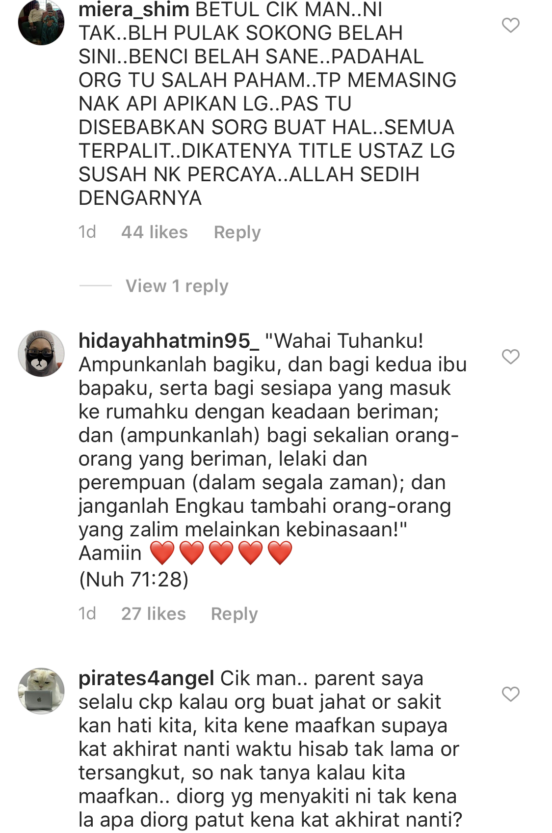 “Cik Man sertakan dalil di ruangan caption,” tulisnya.