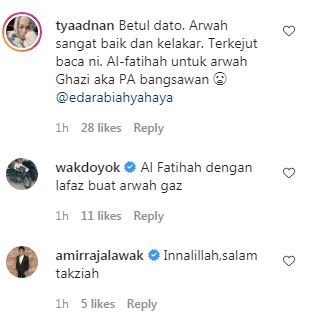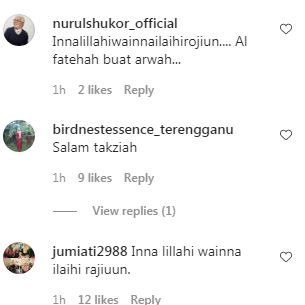 “Hanya Tuhan sahaja yang tahu betapa sedihnya kami sekeluarga. Semoga semua kawan-kawan saya mendoakan beliau di cucuri rahmat dan ditempatkan di kalangan orang-orang yang beriman.