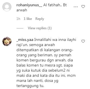 “AMIN YA RAB. Saya yakin setiap orang yang hidup pasti akan menghadap Sang Pencipta,” kongsinya lagi.