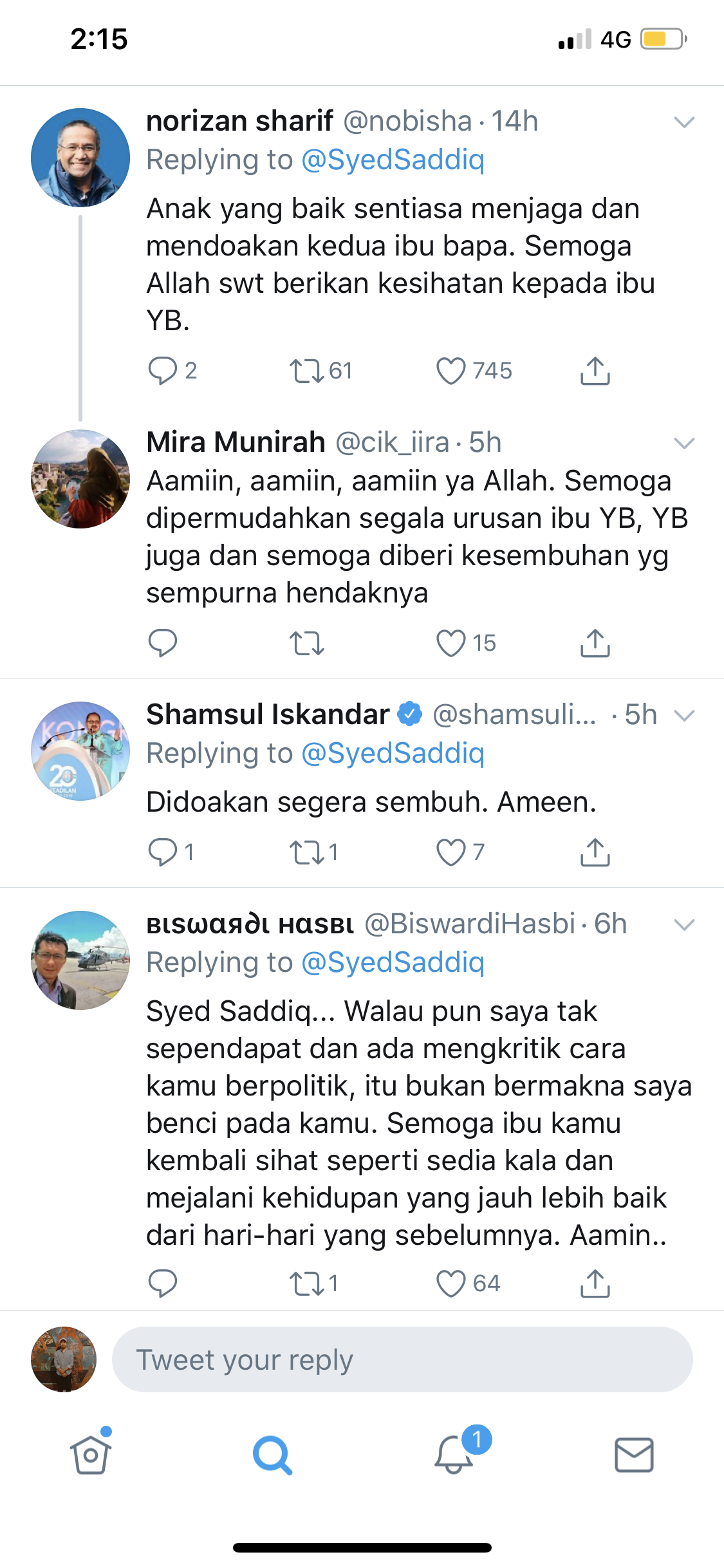 Lalu, Syed Saddiq dikatakan telah bergegas awal meninggalkan mesyuarat parlimen untuk balik ke Muar bagi menemani ibunya yang tercinta itu.