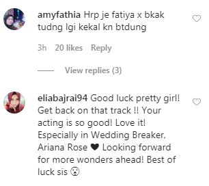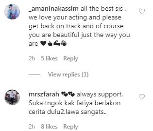 Menerusi ruangan komen, rata-rata peminat memberi reaksi positif terhadap niat Fathia yang ingin kembali aktif dalam industri hiburan tanah air.