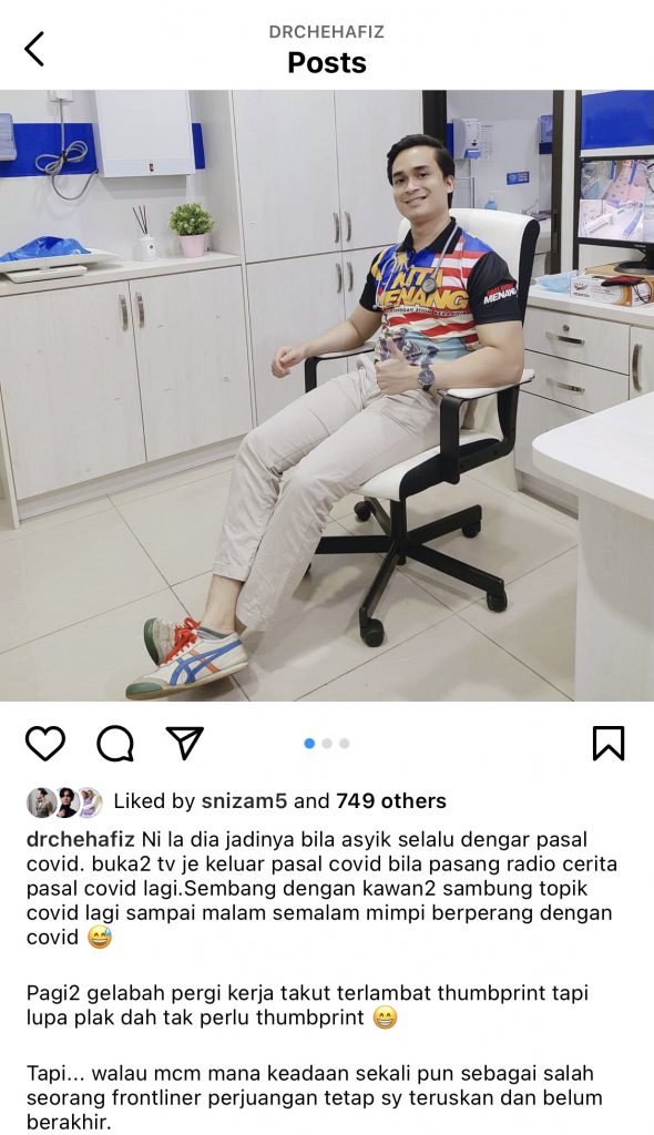 Bekas suami kepada pelakon Lufya Omar, Dr Che Muhammad Hafiz yang bertugas sebagai barisan hadapan ada berkongsi cerita bersama pengikutnya menerusi akaun Instagram miliknya.