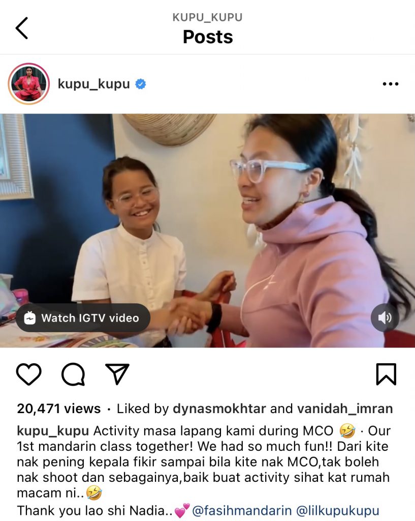 “Wishing everyone to stay safe with your loved ones. What are you guys doing during this MCO?,” kongsinya lagi.
